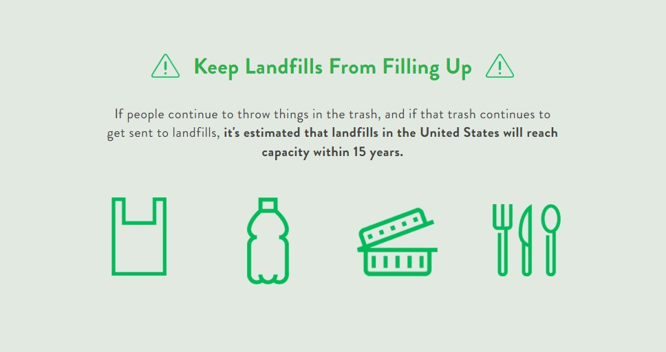 如果人们继续把东西扔进垃圾桶,并且这些垃圾继续被送到垃圾填埋场,估计美国的垃圾填埋场将在 15 年内达到饱和。