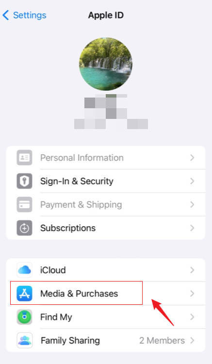 - 1打开“设置”>“Apple ID”>“媒体和购买”。