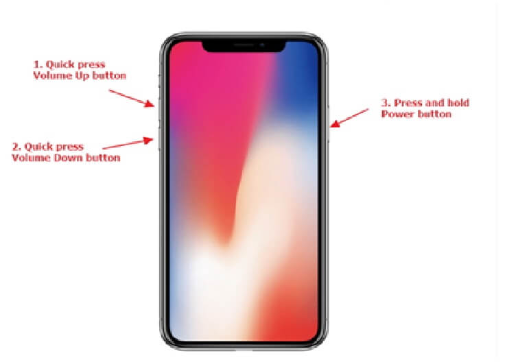 修复 iPhone 重启循环问题最重要的步骤之一是强制重启设备。对于 iOS 版本 11/12/13,您必须单击音量调高按钮。几秒钟后松开按钮。按住设备的电源按钮几秒钟,直到看到 Apple 徽标。