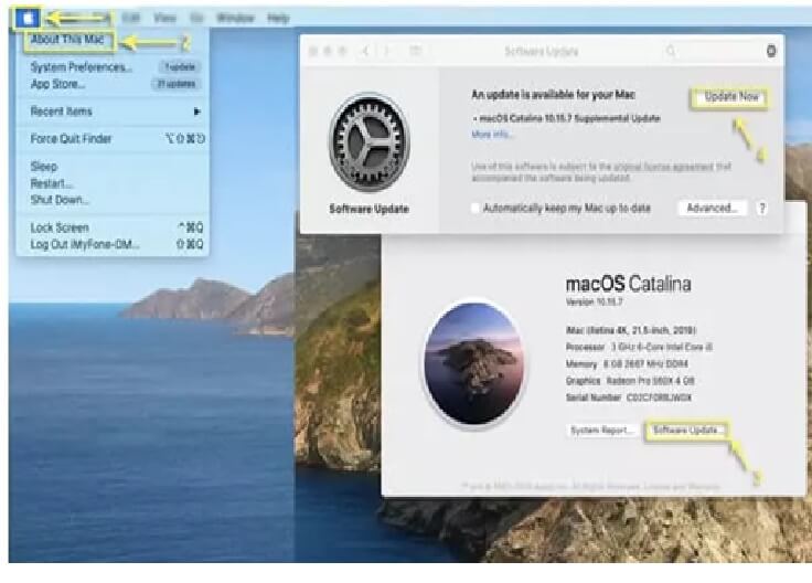 - 步骤 2 – 选择 Apple 徽标,然后选择选项 - 关于本机。一个小菜单将向您显示此选项。然后您将找到更新软件的选项。