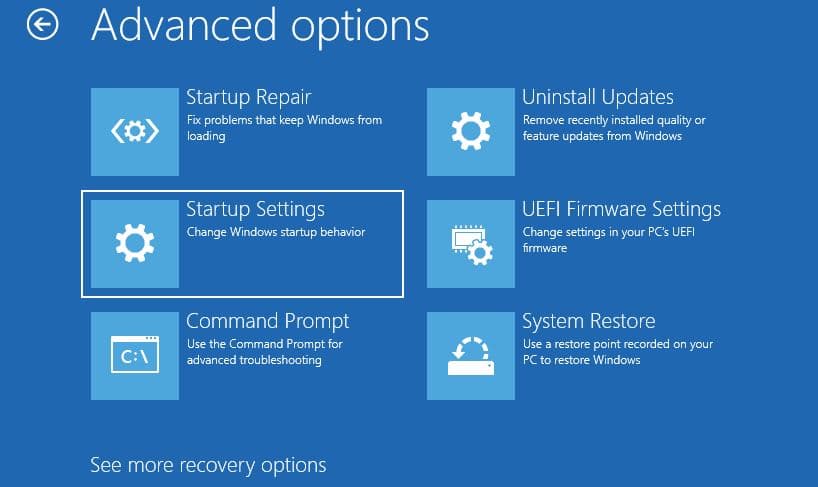 - 单击“疑难解答”,然后单击“高级选项”,然后选择“启动修复”选项。