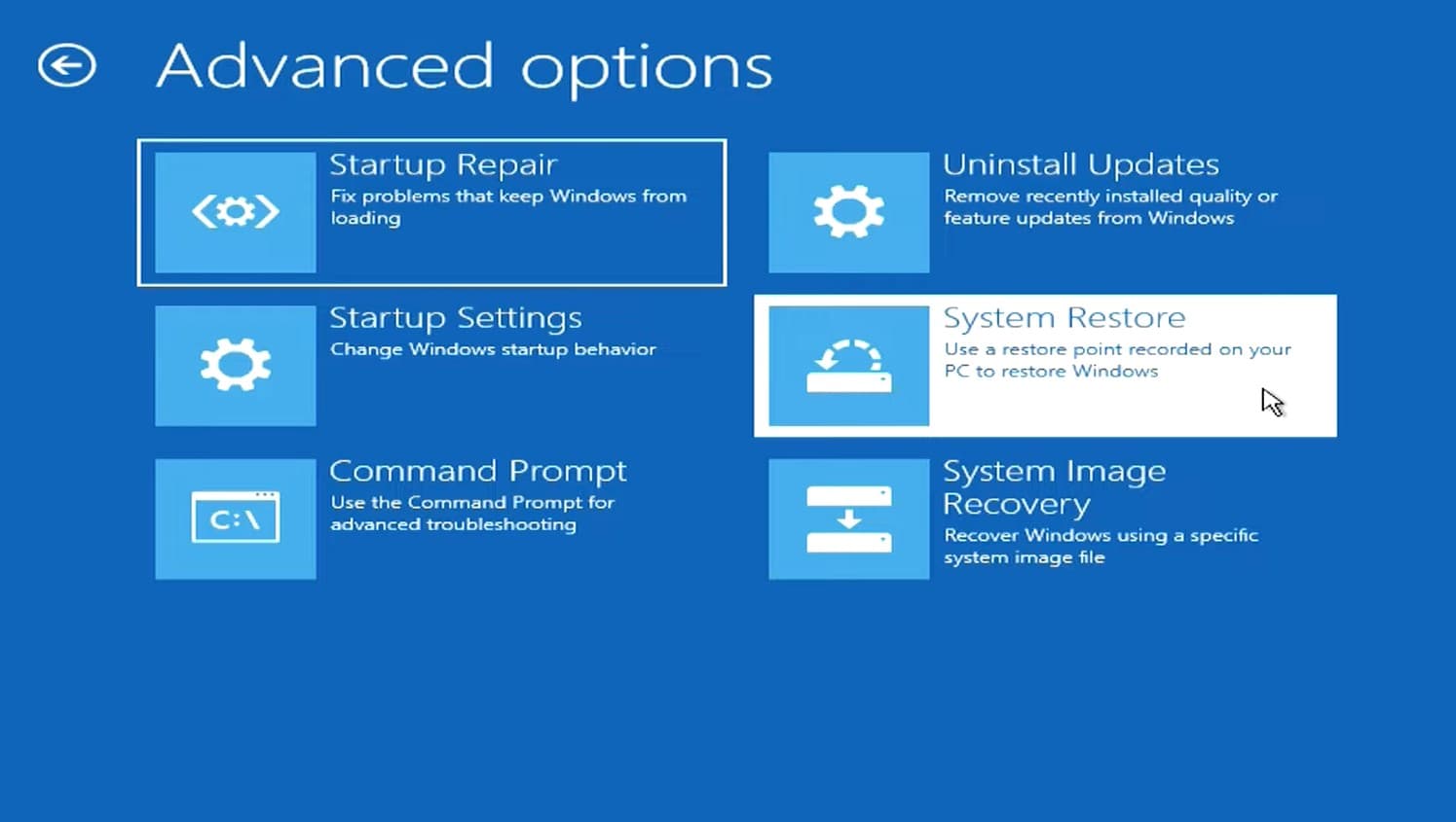 - 转至高级选项 > 疑难解答 > 高级选项 > 系统还原。