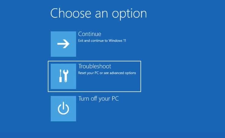 - 接下来,单击“疑难解答”,然后单击“高级选项”