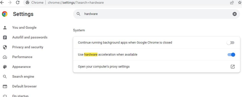硬件加速使用计算机的硬件来卸载某些任务,但可能会在某些系统上引起问题。禁用它有时会导致性能提高。
