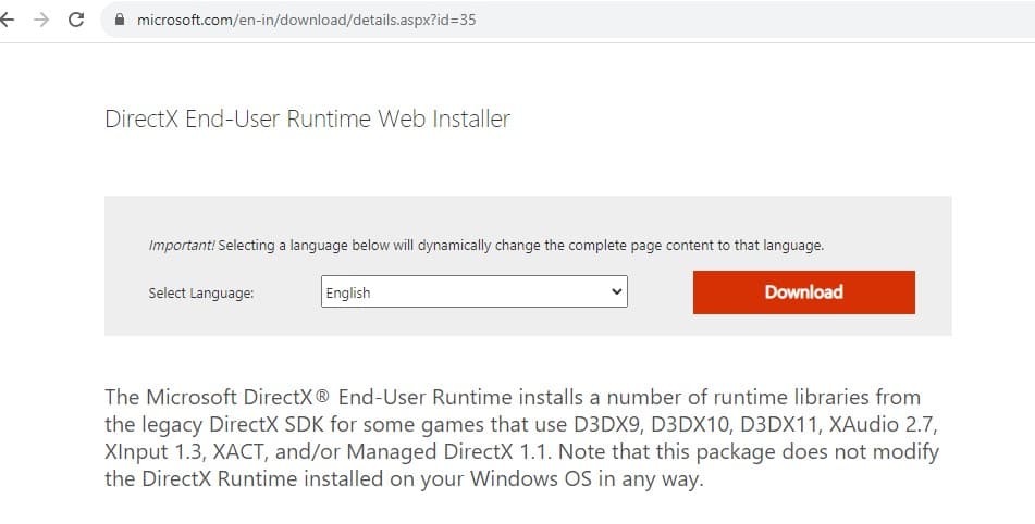 - 访问官方微软 DirectX 网站并下载最新版本。