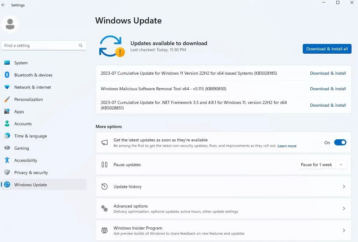 运行过时版本的 Windows 11 会导致某些游戏出现兼容性问题,从而导致游戏过程中不稳定和崩溃。安装最新的 Windows 更新,包括错误修复和稳定性改进,可以解决与游戏相关的崩溃问题。