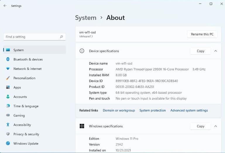 您可以在“设置”->“系统”->“关于”下查看您计算机的规格。