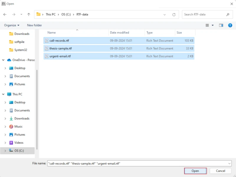 3. 从您的设备中选择所有不可删除的文件。按 ”打开”。