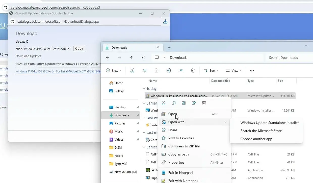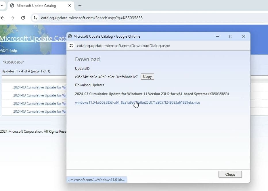为此,我们需要从 Microsoft 目录下载 Windows 11 KB5035853 离线安装程序。