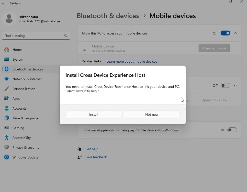 现在,您可以使用 PC 上的截图工具从 Android 设备编辑最近的照片和屏幕截图。要启用此功能,请转到“设置”>“蓝牙和设备”>“移动设备”,选择“管理设备”,然后授予对 Android 设备的访问权限。
