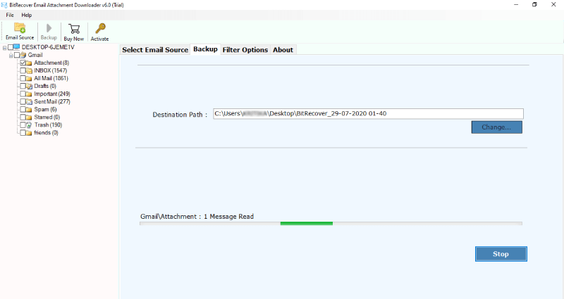 我们建议您试用可用的演示版电子邮件附件提取软件。用户可以在任何 Windows 计算机上启动免费试用版。它允许从每个文件夹中提取十个附件并保留属性。在免费演示版上进行测试后,用户可以切换到该软件的许可版本并从 EarthLink 网络邮件下载所有附件。