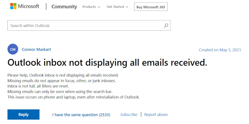 搜索时 Outlook 是否未显示所有电子邮件?无论您是在桌面还是移动设备上使用 Outlook,本指南都将帮助您快速解决问题。在本故障排除教程中,无论您的专业知识如何,即无论您是技术用户还是非技术用户,我们都将指导您完成 8 个最佳解决方案。用户无法在 Outlook 中查看所有电子邮件的问题的常见原因是: