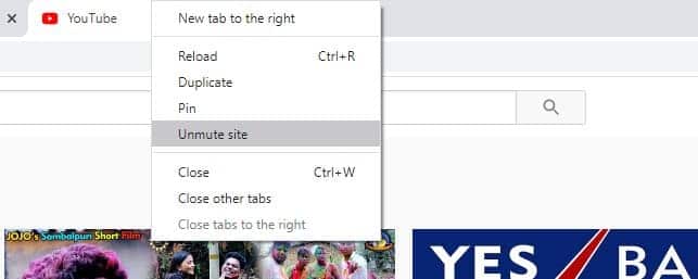 - 右键单击顶部的选项卡,然后选择取消静音站点。