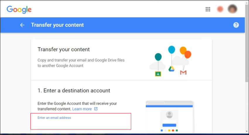 - 现在输入电子邮件地址您的目标 Google Workspace (Gmail/G Suite) 帐户的名称。您的 G Suite 学校帐户数据将复制到此处。