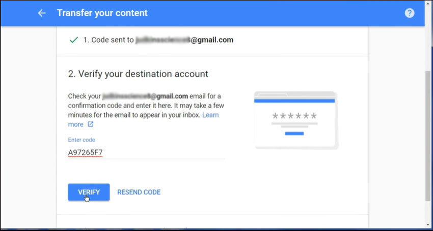 - 之后,转到您的个人电子邮件并复制验证码和将其粘贴到特定字段Google Takeout 传输。