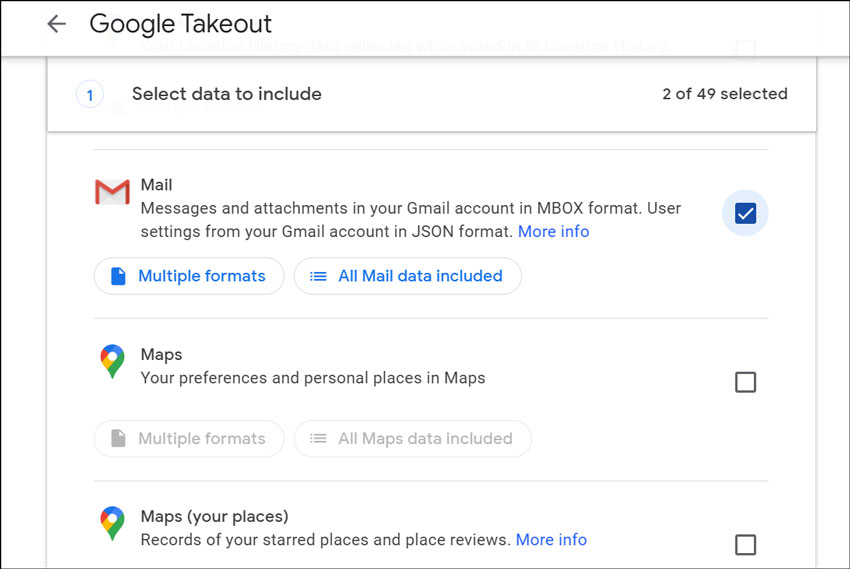- 在那之后,选择所需项目根据您的选择和需要从您的 Google 帐户中获取。按下一个继续。