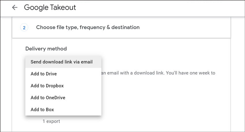 - 现在选择送货方式因此,即通过电子邮件发送下载链接、添加到云端硬盘、添加到 Dropbox、添加到 OneDrive 和添加到 Box。