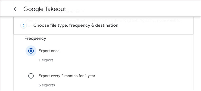 - 此后,选择一个频率从导出一次或每 2 个月导出一次,持续 1 年。