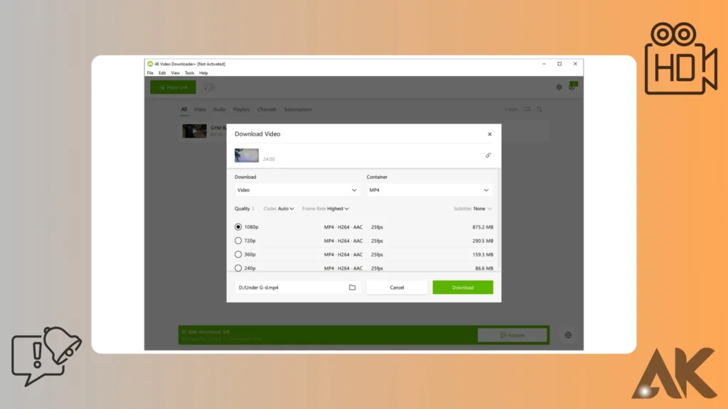 选择设置:选择您想要的电影格式、质量和分辨率。大多数高清视频下载器为您提供不止一种选择,因此您可以选择最适合您的设备和个人品味的设置。