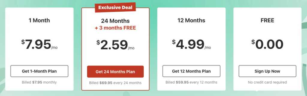 最后,24 个月的费用为每月 2.59 美元,或者每两年总计 69.95 美元,另外两个月免费。