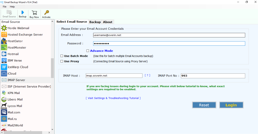 现在,选择IMAP服务器从软件面板中给出的电子邮件源列表中。