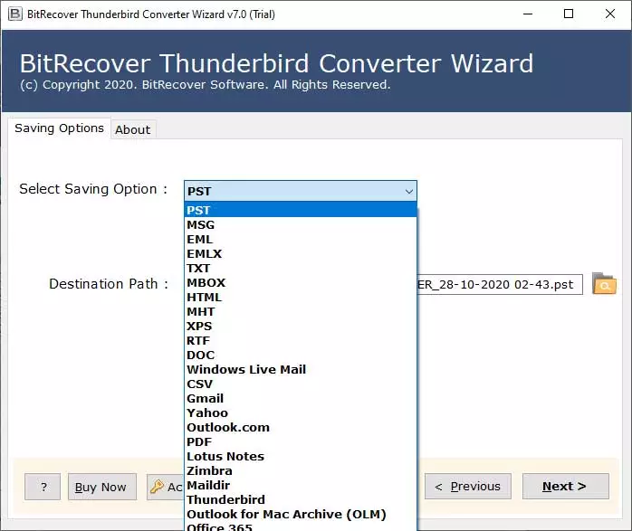 • 该实用程序具有 30 多种保存模式,允许用户轻松转换、备份、修复和传输 Thunderbird 数据。因此,通过此解决方案,用户可以轻松将 Thunderbird 转换为 PST、PDF、EML、Gmail、Outlook 等。