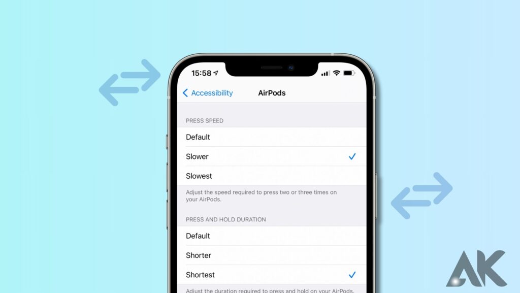 通过以下方式更改 AirPods 的按压速度和持续时间: