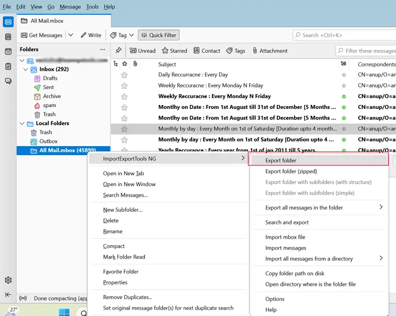 - 将 MBOX 文件导入到 Thunderbird 客户端。