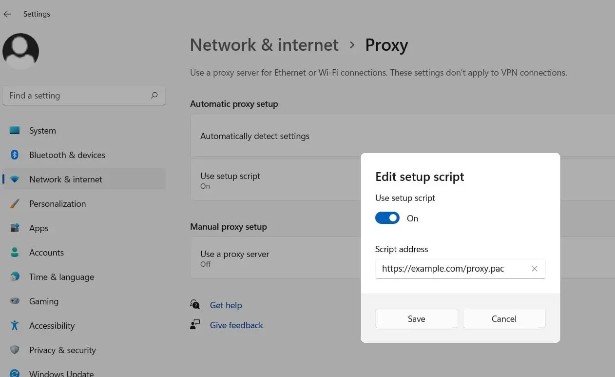 您还可以在Windows 11上使用安装脚本方法在您的设备上配置代理。您的网络管理员将为您提供此脚本,允许您在系统上建立代理服务器。这就是使用该脚本的方式。