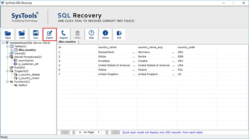 - 允许在SQL Server数据库(MDF)中恢复已删除的表,然后您可以在Excel电子表格中导出删除表。