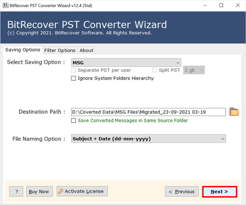 - 首先,开始PST 到 MSG 转换器并阅读出口说明。