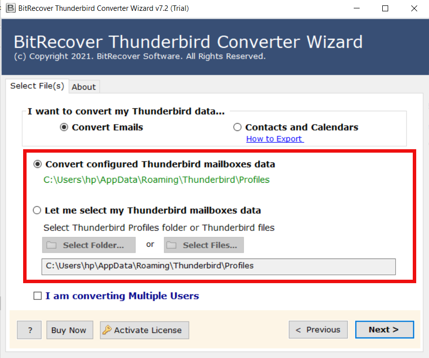 是的,BitRecover Thunderbird 到 Outlook 传输工具与所有 Outlook 版本兼容,包括 Outlook 2021、2019、2016、2013 和所有其他版本。