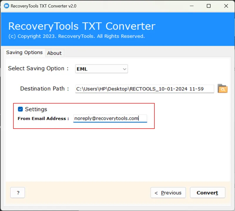 - 下载并运行TXT 到 EML 转换器在您的 Windows 计算机上。