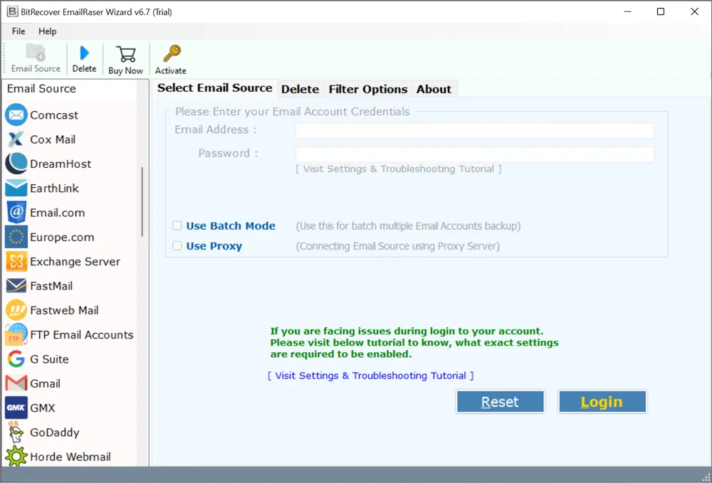 - 安装交换电子邮件橡皮擦在您的计算机上并运行它以开始该过程。