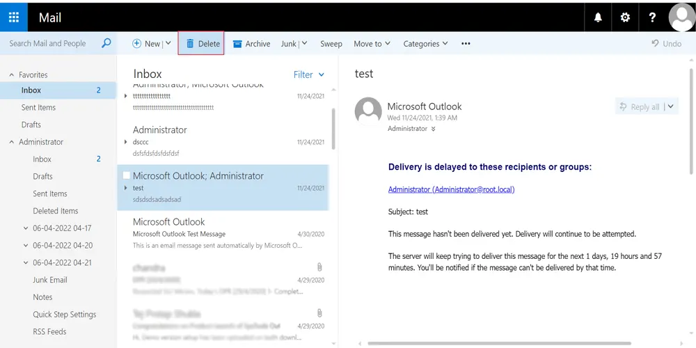 限制:这是一种耗时的方法,允许从 Exchange Server 一次删除电子邮件。因此,如果您想删除 100 封电子邮件,则需要重复相同的步骤 100 次。