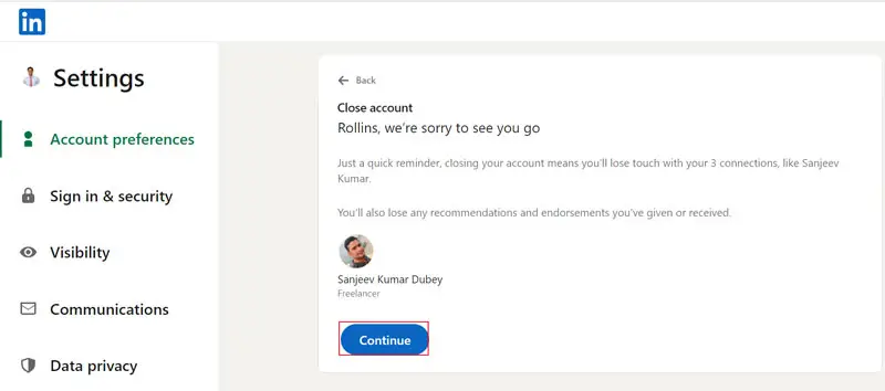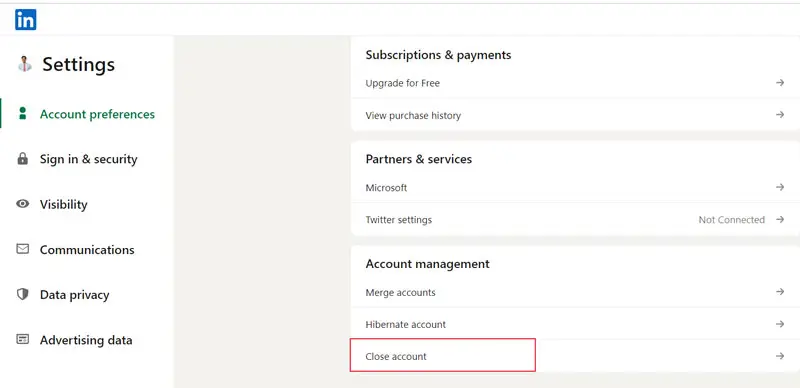 如果您不想继续使用您的 LinkedIn 个人资料并希望永久停用或删除 LinkedIn 帐户。然后,您可以在这里阅读完整的分步指南,以永久关闭 LinkedIn 帐户,而不会遇到问题。