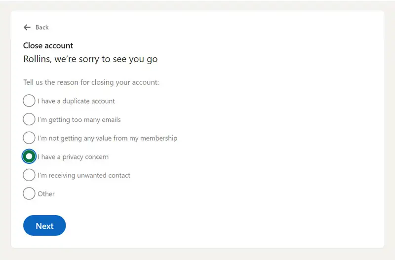 现在,请按照最后步骤在 2023 年永久删除 LinkedIn 帐户。