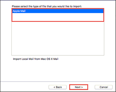 - 您将浏览 Apple Mail Import 名称文件夹。