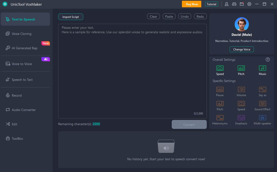 总而言之,加菲猫一直是我们童年的回忆,而本文也提供了制作加菲猫人工智能语音的最佳解决方案。您不妨尝试一下!UnicTool Voxmaker 语音生成器引领道路。使用智能 AI 技术创造超过 3,200 种独特的声音,包括那些类似于名人和卡通人物的声音。这个应用程序最好使用,因为它免费提供多种功能,并且可以轻松用于各种内容目的。