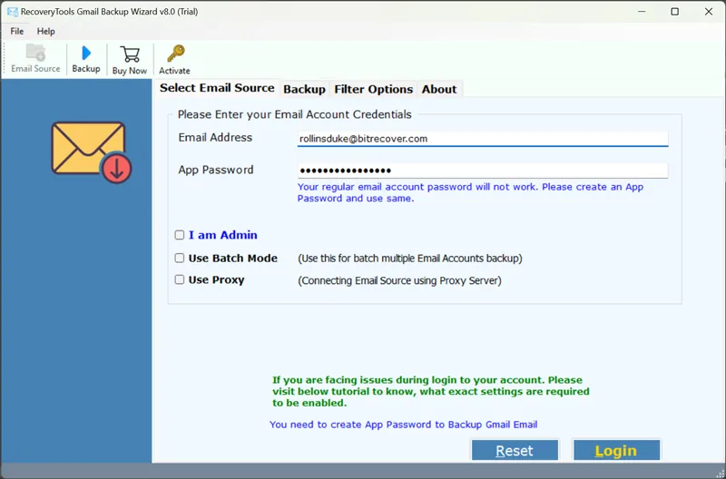 - 输入您的帐户凭据(电子邮件 ID 和应用程序密码),然后单击登录。