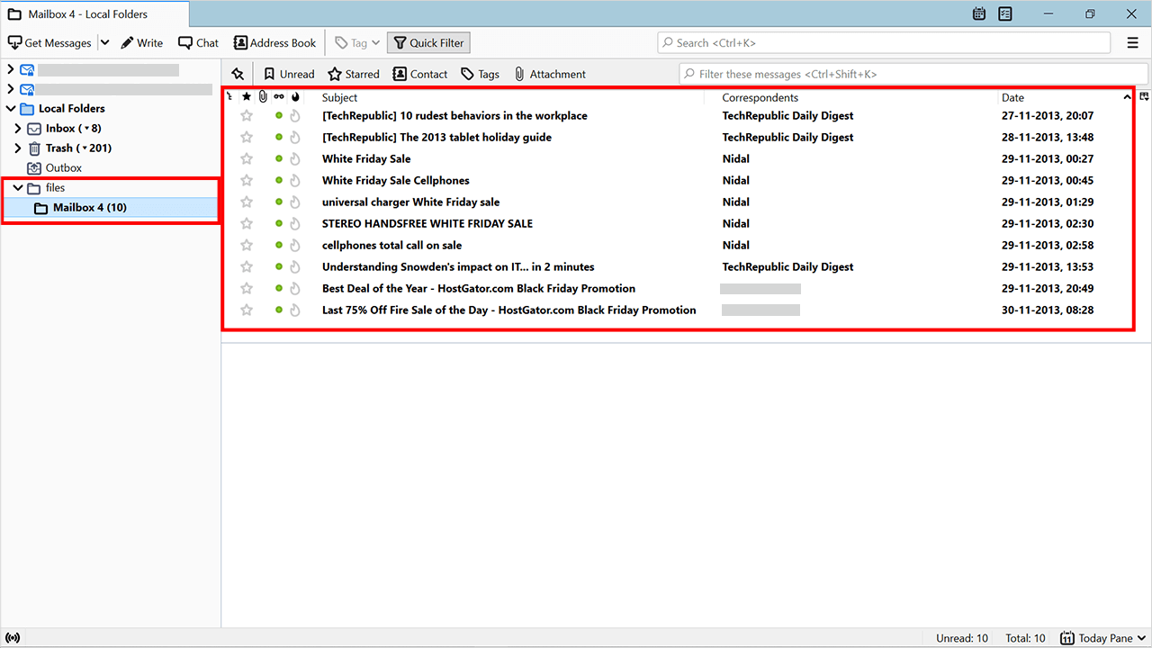 - 之后,您就可以在您的文件夹中看到导入的数据邮箱帐户。