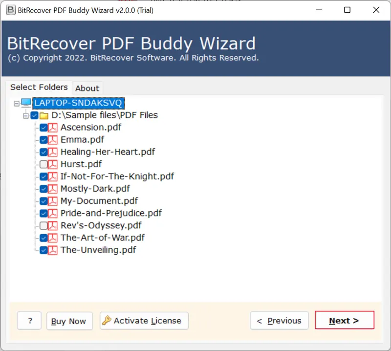 - 一旦你将 PDF 文件添加到软件面板,向导将列出左侧目录中的所有文件。