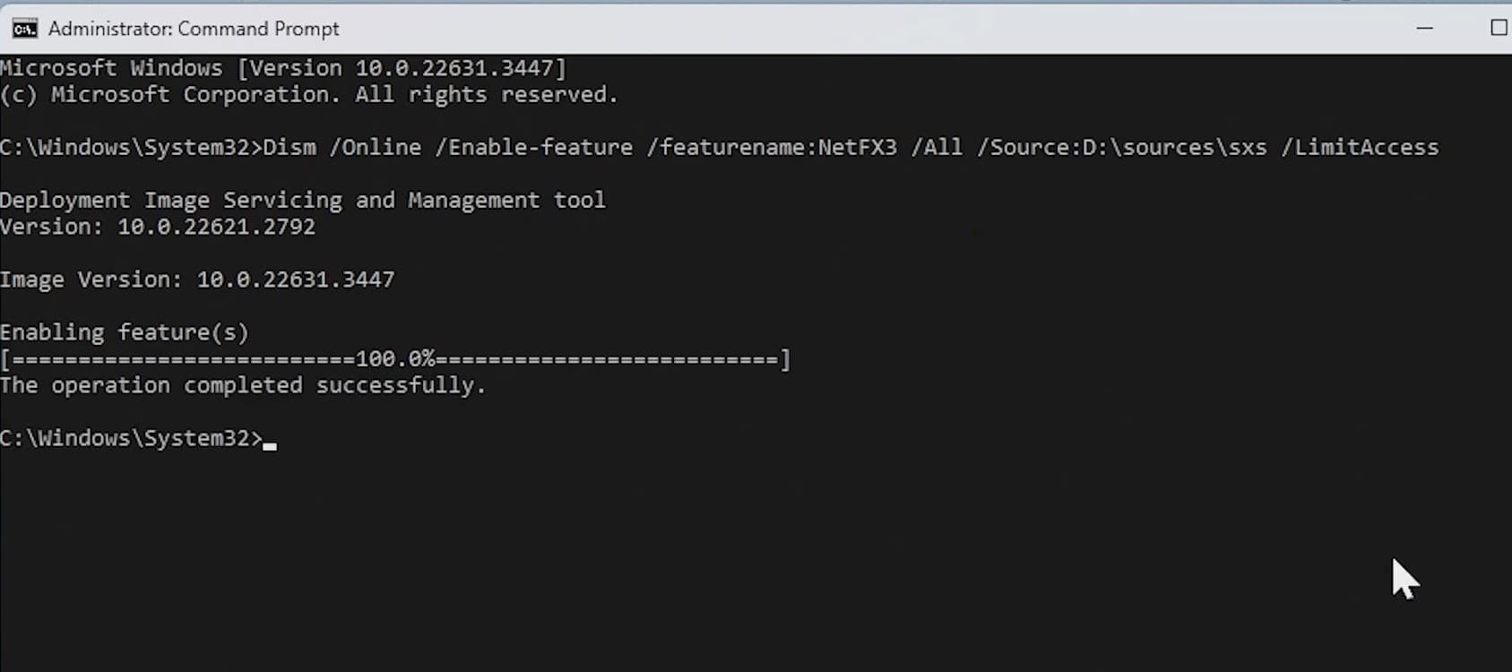 DISM /Online /Enable-Feature /FeatureName:NetFx3 /All /Source:D:sourcessxs /LimitAccess