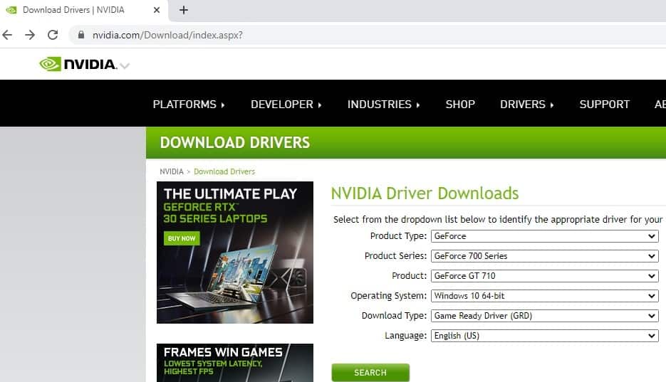 此外,您还可以从设备制造商的网站下载并安装最新的驱动程序。例如,如果您正在寻找更新 NVIDIA 显卡驱动程序。