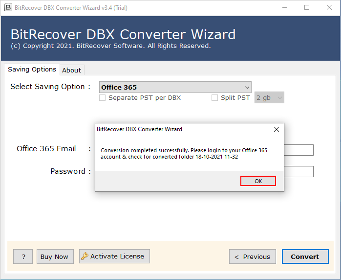 答 – 是的,没有大小限制,该工具允许将无限的 DBX 文件直接迁移到 Office 365 帐户。