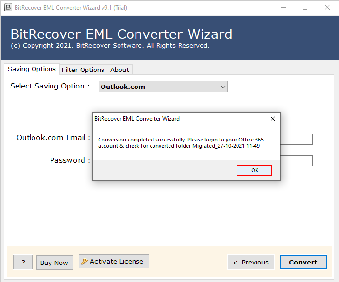 BitRecover EML 转换器软件是经过认证且值得信赖的软件,可将 EML 文件转换为 Hotmail。该工具提供了最直接、最流畅的方式,轻松将所有 EML 文件批量导入 Hotmail 帐户,而不会丢失任何信息。与其他方法不同,此工具不会弄乱 EML 文件的原始格式。此外,它在迁移过程中为您提供了多种好处,例如导入带附件的 EML 文件、批量转换、多个保存选项、仅导入选择性文件夹等。众所周知,该软件以其强大的功能可以轻松地将 EML 转换为 Hotmail。该软件不含病毒和垃圾邮件。