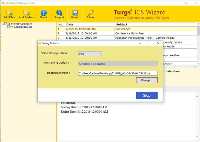 由于前顶级玩家 (Google Calendar Sync) 现在已退出游戏,因此查看专家解决方案以及在 Outlook 中打开 Gmail 日历显然是有意义的。这ICS转换器非常简单,几乎不需要任何技术指导。它可以轻松地将导出的 Google 日历(.ics 文件)转换为 (.pst) 格式,以便稍后导入到 MS Outlook 中。