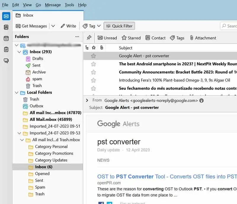 - 现在您可以看到 Google 保险柜电子邮件成功导入到雷鸟。