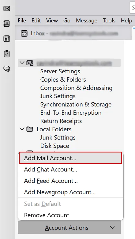 - 然后,前往“账户操作”选项并选择“添加邮件帐户”.