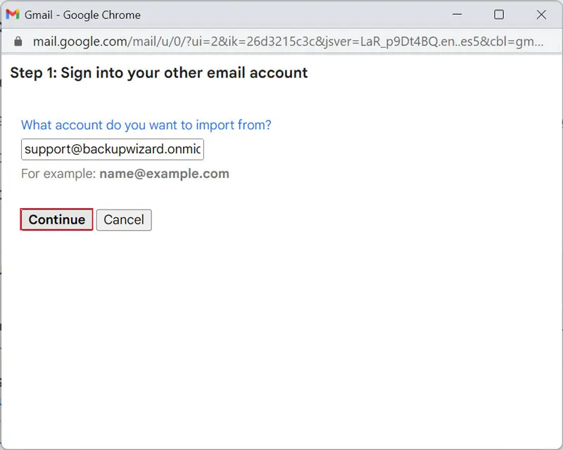 - 现在,输入 Gmail 帐户凭据并单击“继续”按钮将 MBOX 导入 Gmail。